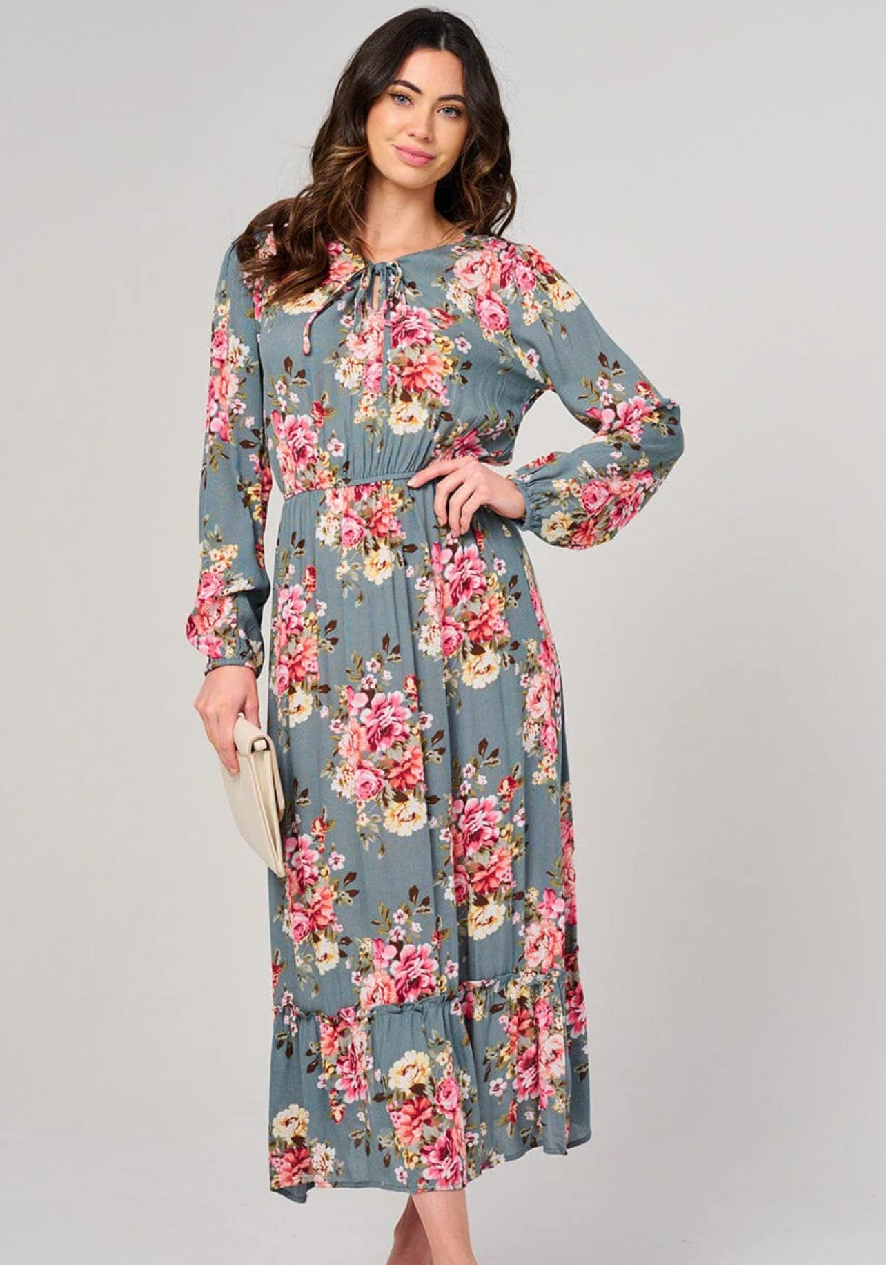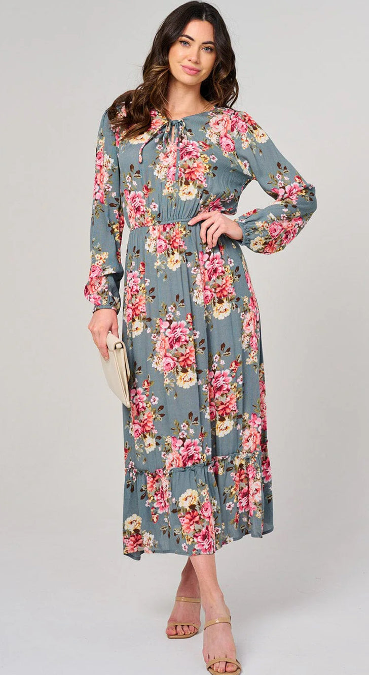Beautiful elastic waist floral maxi dress. It’s perfect for wearing casual or dressing it up!